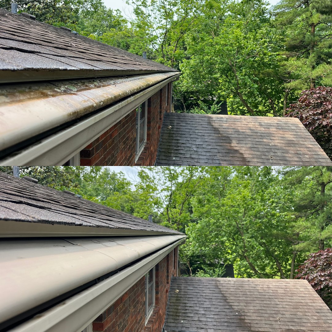 Beyond looks, this cleaning helps preserve the siding and gutter system, preventing the kind of long term wear that can come from algae or lichen buildup. Most clog-free gutter systems will no longer function properly with that type of organic build-up on top. Typically due to the altered surface tension caused by those harmful organics. Once removed, the gutters wick water directly into the gutter assembly as they should, and keep the leaves and other debris out of the gutters once again.